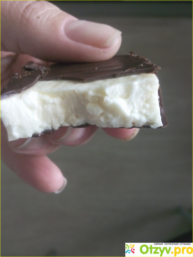 Конфета имеет прямоугольную форму, покрыта шоколадной глазурью. Запах очень приятныф и аппетитный )