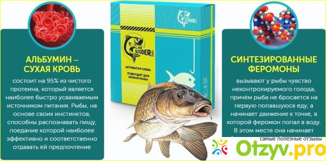 Это современная приманка разработанная ведущими специалистами ихтиологами для быстрой ловли хищной и мирной рыбы в любое время года. Если человек любит рыбалку, но улов оставляет желать лучшего, то активатор клева именно то, что надо. Стоит опустить приманку в воду, как у рыбы возникает неконтролируемый импульс подплыть к месту клева. Активатор содержит сухую кровь и ферменты способствующие возбуждению интереса у рыб. Эти вещества провоцируют голод и заставляют заглатывать любую приманку. У препарата нет аналогов, это единственный в своем роде активатор клева с натуральным органическим составом. К тому же приманка довольно экономичная, так как полностью окупит себя за один улов.