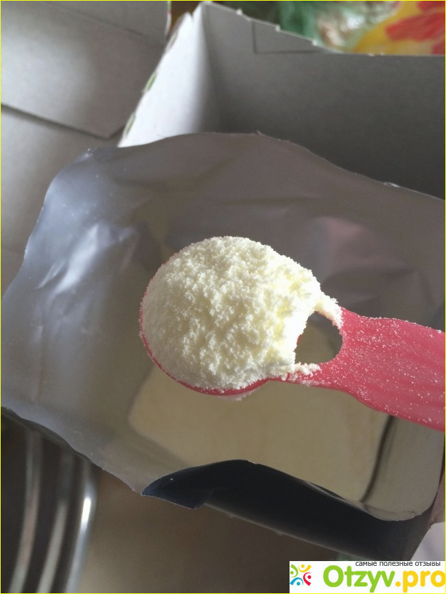 Сейчас смесь выпускается в новой упаковке, которую после открытия удобно закрывать, а так же ложка-зажим, которой можно зажать уже открытый пакет. Мы покупаем смесь в больших упаковках по 700гр (есть еще по 350гр), в коробке 2 пакетика по 350, очень удобно, и большие пачки стоят дешевле. На упаковке есть информация о составе, способ приготовления, таблица кормления, таблица пищевой ценности.