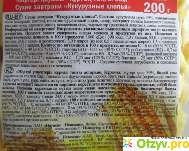 Изготовлены хлопья в Литве, ЗАО «Науяис Невежис».