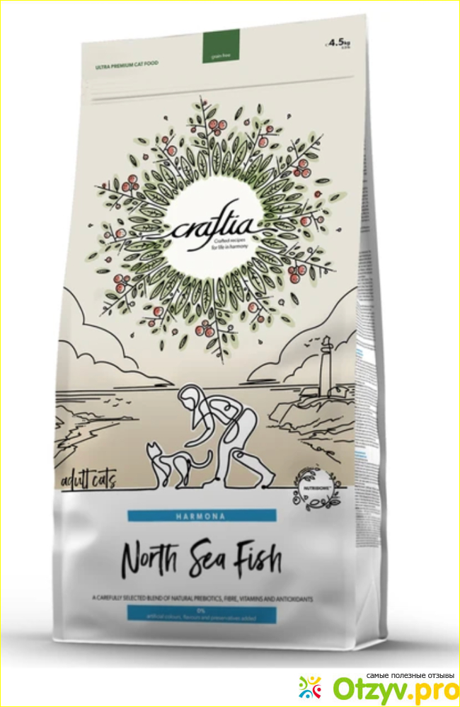 Взяли на пробу этот рыбный Craftia Harmona, когда корм из утки временно пропал из продаж в нашем магазине. У нас две кошки и одна из них просто обожает рыбу. Упаковка 1.4 килограмма показалась оптимальной, не слишком много, чтобы испортиться, и не слишком мало.