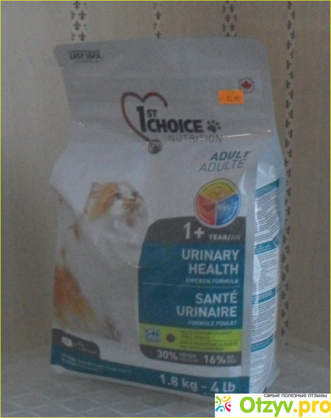 "Urinary Health" это сравнительно новый продукт в линейке канадских супер-премиальных кормов 1st Choice. Во всяком случае в наших магазинах я обнаружила его около полугода назад. На сайте производителя тщательно изучила состав и решила купить. Корм моим обоим котам очень понравился. С тех пор покупаю его регулярно. Он продается в пакетах несколько не стандартных для этой линейки - по 1.8 кг. Два кота съедают упаковку за две недели.