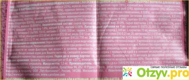 И совсем не нужно было писать состав корма на всех языках мира, если прочесть его в результате без бинокля невозможно. Мы бы уж как-нибудь с английского перевели.