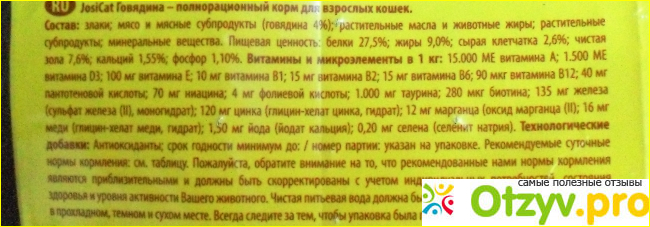 Что мы видим в составе. Как таковой говядины 4% и плюс продукты переработки -внутренности, жилы, хрящи и, конечно, кости. Судя по тому, что "зола" высокая, в составе много молотых костей. Но, я считаю, что для хищника лучше молотые кости, чем продукты переработки зерна. Если не получится на фото состав прочитать, то на официальном сайте Josera все подробно расписано.