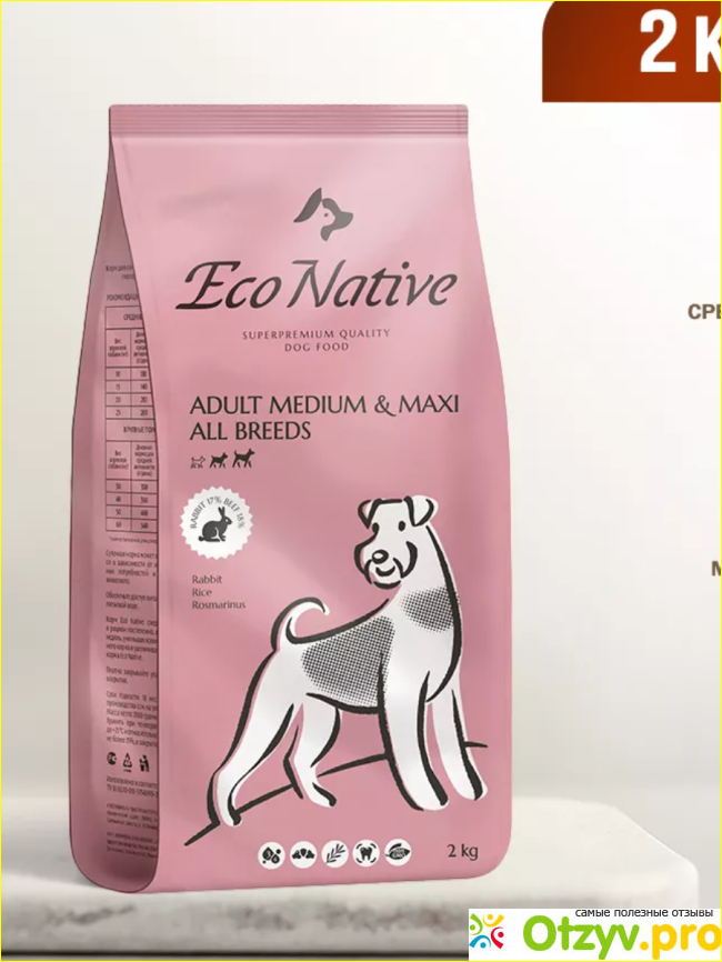 Собаки этой породы имеют склонность к набору лишнего веса, и корм нашему красавцу подходит не всякий. Эко нейтив подошёл хорошо. Кормим по норме указанной на пачке, разделяем граммовку на 3 раза. Любимый вкус у нас с кроликом, рисом и розмарином. Он зашел больше всего из всей линейки кормов Эко нейтив. К самому корму претензий нет, но пачку нужно сделать удобнее, чтоб можно было закрывать ее, потому что куда-то пересыпать не хочется.