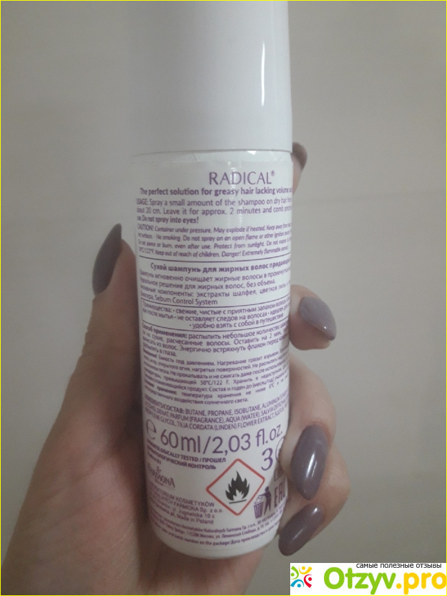 Наносить просто. Распылить, подождать, слегка взъерошить волосы. На совсем грязные применять не стоит – слабенький. А еще ни один шампунь не поможет убрать остатки лака или укладочных средств. Только мытье!