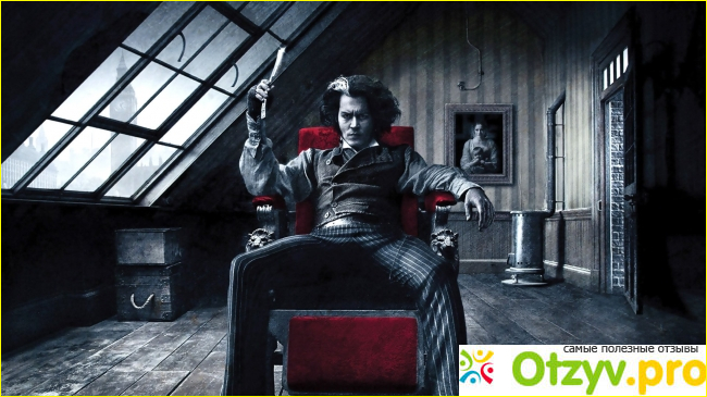кровью! Кровь стекает с крыш домов, просачивается сквозь закрытые двери и проникает в ваши кошмары... Кровь их сонных артерий жертв Суини Тодда, кровь, которая так похожа на кетчуп в этой экранизации... Мне кажется, кровь в фильме Суини Тодд, смотретькоторый мы сели вместе с детьми, была неправдоподобна потому, что Тиму Бертону не хотелось заострять внимание на том, что эта история - страшилка. В первую очередь экраниизация Суини Тодда оказалась не столько страшной, сколько завораживающе атмосферной. Да и Джонни Депп в роли главного цирюльника-брадобрея был величав и статен, как никогда. И, к тому же, для меня открылся новый талант неиссякаемого на чудеса Деппа - он еще и довольно неплохо поет! А в тандеме с Хеленой Бонем Картер так вообще выдает такие трели и сольные партии, что неволей заслушиваешься!
