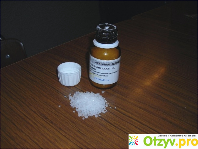 Сульфат магния белый кристаллический порошок, очень неприятный на вкус, вода получается горькая, потом я уже была научена и пила с закрытым носом.