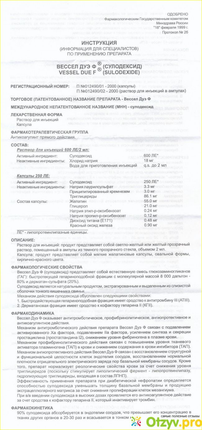 Могу с уверенностью сказать что данные препарат действительно оказывает положительное терапевтическое действие, но как указывают большинство врачей и специалистов - данный препарат эффективен более всего при начальных стадиях ретинопатии вызванной именно диабетом. Чаще всего препарат можно встретить в форме раствора для иньекций. Но нужно обязательно сказать что для начал нужно пройти консультацию у вашего окулиста, у которого вы проходите обследование. Возвращаясь к сути написанного, стоит сказать что цена у препарата полностью соответсвтует его качеству. Первый курс назначили таковым. 10 уколов внутримышечно. Наш врач сказал что специфичность данного препарата заключается в том что он действует не сразу, а проявляется если соблюдать более менее правильный режим питания, в первую очередь что касается сахара. После первой части курса (уколов) результат не заставил себя долго ждать, несмотря не предупреждения врача. Результат, как говорится налицо и что не менее важно, это то что улучшение состояния отлично отразилось и в анализах. Последующий этап заключался в том что Сулодексид был назначен в форме капсул. И уже после прохождения курса капсул эффект достиг совего пика. Поэтому, вынужден сказать что наибольший эффект от улучшения достигается по прошествию полугода. Эффект очень заметный как по ощущениям так и в целом. Препарат прошел проверку и его с уверенностью можно рекомендовать при подобных состояниях. Возвращаясь к теме анализов, стоит сказать что препарат отлино себя показал в таком факторе как повышенное выделение альбумина в моче(микроальбуминурия). В этом показателе анализы после приема иньекций пришили в норму. Еще одна рекомендация, которую дал доктор - в обязательном порядке до начала лечения и в течении всего курса приема препарата проводить коагулограмму. Это крайне рекомендуется. Теперь также нужно рассказать насколько улучшение состояния зрение и общего фона влияет на собственное психологическое состояние. Выбором препарата я очень доволен и безусловно рад тому то что он действительно работает. Теперь все что нужно - это поддерживать состояние улучшения как можно дольше ведь недаром говорится что диабет - это скорее состояние требующее в первую очередь перемен в образе жизни. Ведь на одних только препаратах устойчивого эффекта добиться не всегда получится. Вот пожалуй и все что я хотел бы рассказать об этом препарате, который несомненно заслуживает внимания для людей которые страдают сахарным диабетом, а также подобными вытекающими осложнениями .