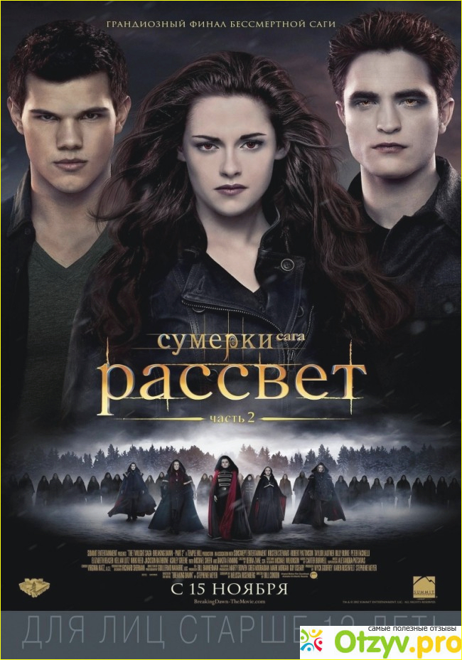 Снято красиво, сюжет фильма не оставил безразличным к истории жизни героев саги. Белла после превращения в вампира стала сильнее и как мне кажется мудрее. Более красивой, сильной, уверенной в себе. Ведь она теперь мама и все силы отдаёт на защиту своей дочери. В центре внимания теперь не Бэлла и её возлюбленный Вампир , а их дочь. И все события этой части будут происходить вокруг её.