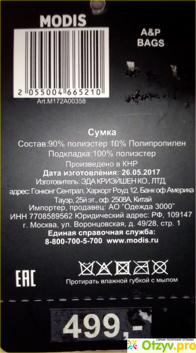 В конце декабря в магазине сети Модис увидела простенькую, небольшую сумку, которая подходит на каждый день. Изначально продавалась она за 500, на момент моего визита в магазин уже была со скидкой - на ценнике указано было 300 рублей. Сумка легкая, тонкая, все швы ровные и аккуратные.
