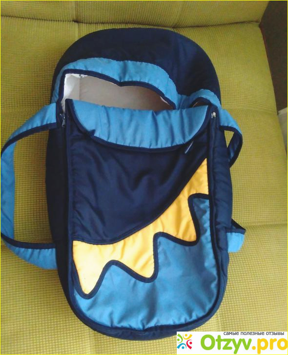 Хотя внутри капюшона должен быть такой материал типа поролона, но, видимо, слабоват. При выборе такой сумки обратить нужно обратить внимание на капюшон - он должен хорошо держать форму. Если капюшон мягкий и падает, то естественно, он будет падать на лицо ребенка и будет перекрывать доступ воздуха. Или придется постоянно следить или поправлять, или вовсе отстегнуть его. Словом, колпак, пожалуй, самое важное в этом.