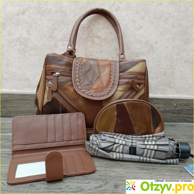 Удивительно, но это получается дешево — мало того, что цена недорогая для сумки из натуральной кожи, так еще и кошелек и косметичка из натуралки — тоже в подарок!
