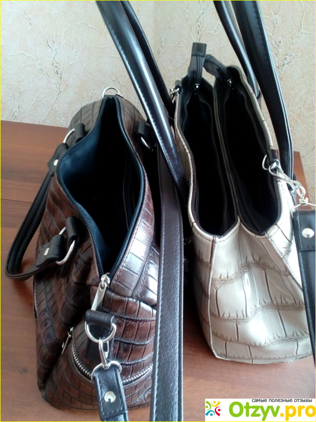 Все сумки, которые я приобрела у данного производителя, классического делового стиля, плотные каркасные, с ручками высотой 17 см. У коричневой сверху четыре отделения на молниях, три из которых смотрятся стильно именно благодаря металлическим замкам.