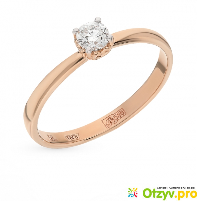 Колечко из розового золота с камушком. На вид очень лаконичное и простое, но с изюминкой, точнее с бриллиантиком 0,18 карата.