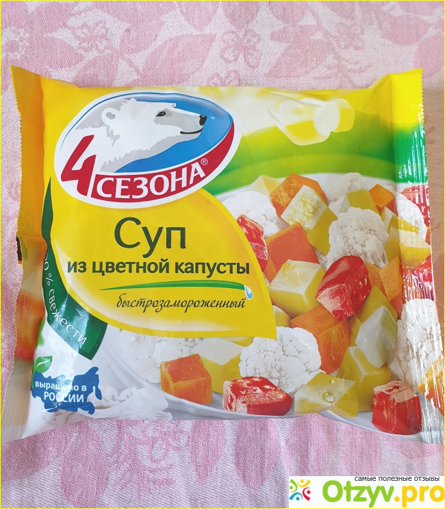 Этот суп-заморозка выделялся своей низкой ценой. Мне кажется дешевле уже ничего не было. А состав – очень неплохой. Как раз все, что в обычных супах содержится. Только вместо белокочанной цветная капуста.