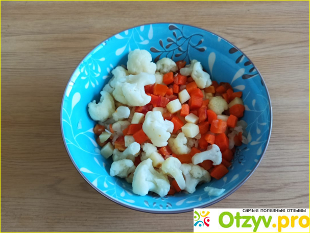 Долго не думая взяла. Что там было в действительности посмотрела уже дома. В тарелке оказалась смесь из овощей. Причем выглядело все очень презентабельно. Все составляющие пакета рассыпались, слипшихся кусков не было. Это был хороший знак, значит, продукт не размораживался, хранение было правильным, и семья получит не простой обед, а витаминный обед.