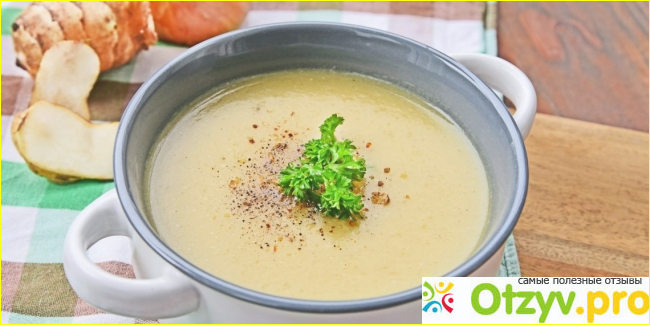 Для готовки супа будем использовать 500 г топинамбура, пол литра овощного бульона, столько же молока (нежирного), луковицу репчатого лука, зубчик чеснока, 30г сливочного масла, 30г кукурузной муки, молотый перец черный, свежую петрушку, нежирные сливки.