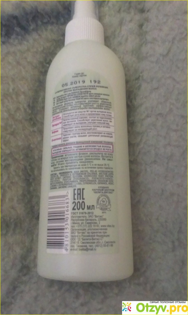 Предназначение сыворотки-спрея: против выпадения волос. Объём флакона: 200 мл. Изготовлено по Гост.