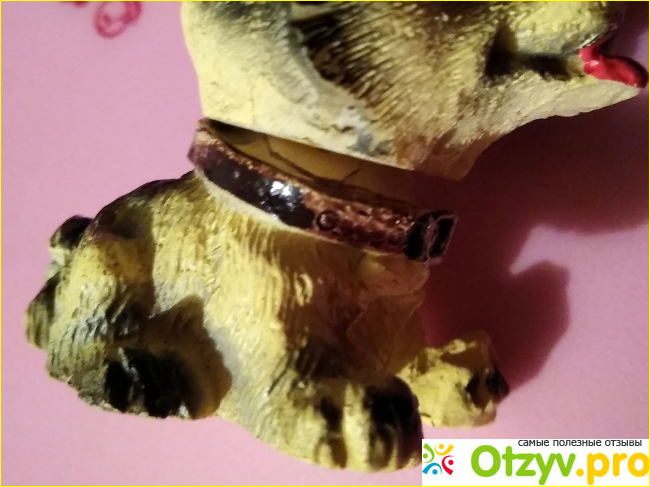 Второй проблемой было то, что диаметр горла и головы немного разный, и она садиться с небольшим зазором. Вплотную на всё горло не посадить. В итоге сначала я приклеила отколовшийся кусок горла. Вот, видна трещина на фото. Потом я промазала затылок собаки и голову в этом месте, и зафиксировала её в нужном положении, приклеив её только в затылочной части. Весь зазор сместился вперёд.