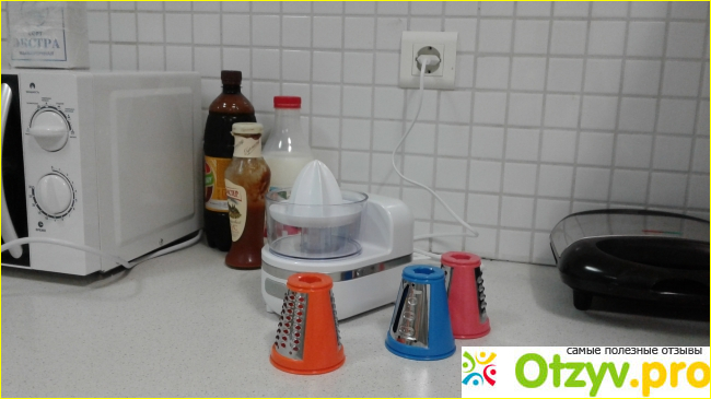 Все предметы компактно собираются в единое целое, благодаря чему комбайн способен не занимать много места на кухне.