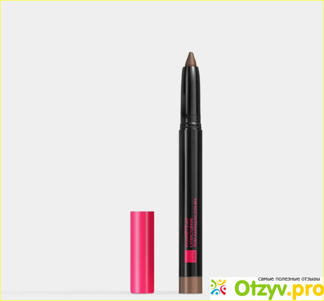 Сам карандаш черного цвета, с надписями розового цвета. Текстура стика мягкая и нежная, наносится прекрасно. Стойкий пигмент позволяет цвету сохраняться весь день. Карандаш не собирается, не сыпется, лежит красиво и даже сияет. Все благодаря мерцающим частичкам. Продукт очень мне нравится, потому что удобно пользоваться. Расходуется медленно, хватает надолго.