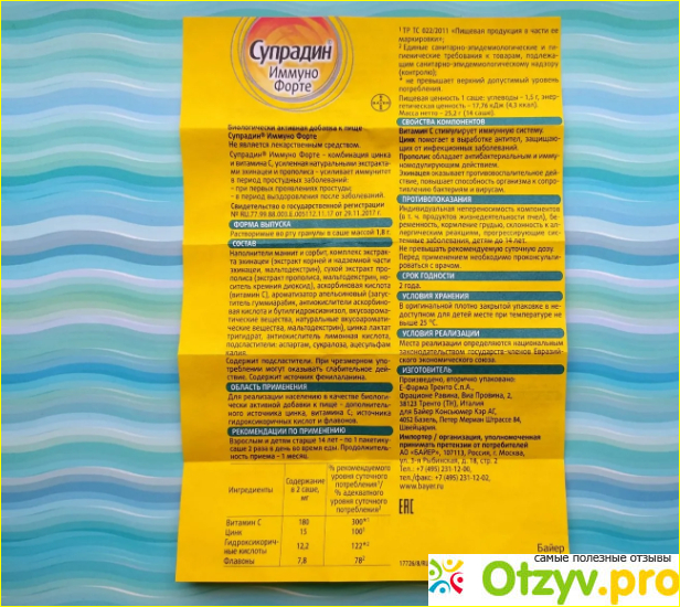 Просто я принимаю Супрадин иммуно форте уже не первый раз, а потому без инструкции точно знаю как и сколько его употреблять. А для тех, кто впервые купил эти витамины — внутри есть подробная инструкция. Кстати, что меня удивляет — она напечатана не на простом белом листке бумаге, а на ярко-желтом, таком радостном, просто глаз не отвести!