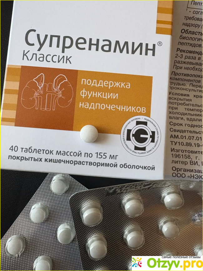 В итоге придя в очередной раз в аптеку и разговорившись с фармацевтом она мне советует попить Супренамин Классик. Это натуральный пептидный биорегулятор, который, как утверждают производители, поддерживает работу надпочечников и помогает организму адаптироваться к стрессу. Что именно надпочечники могут тормозить выход из этого процесса и стресса. Беру, состав и правда хороший, а противопоказаний особо нет.