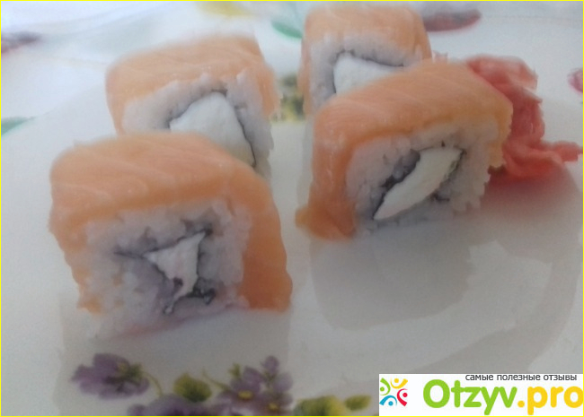 Пробовала из данного суши бара я классические роллы "Филадельфия", которые состоят из сыра, рыбы, риса и водорослей. Вроде бы простые, я даже не ожидала что они такие вкусные будут. Тут и размер роллов удивил, они визуально крупнее, чем в других суши-барах.