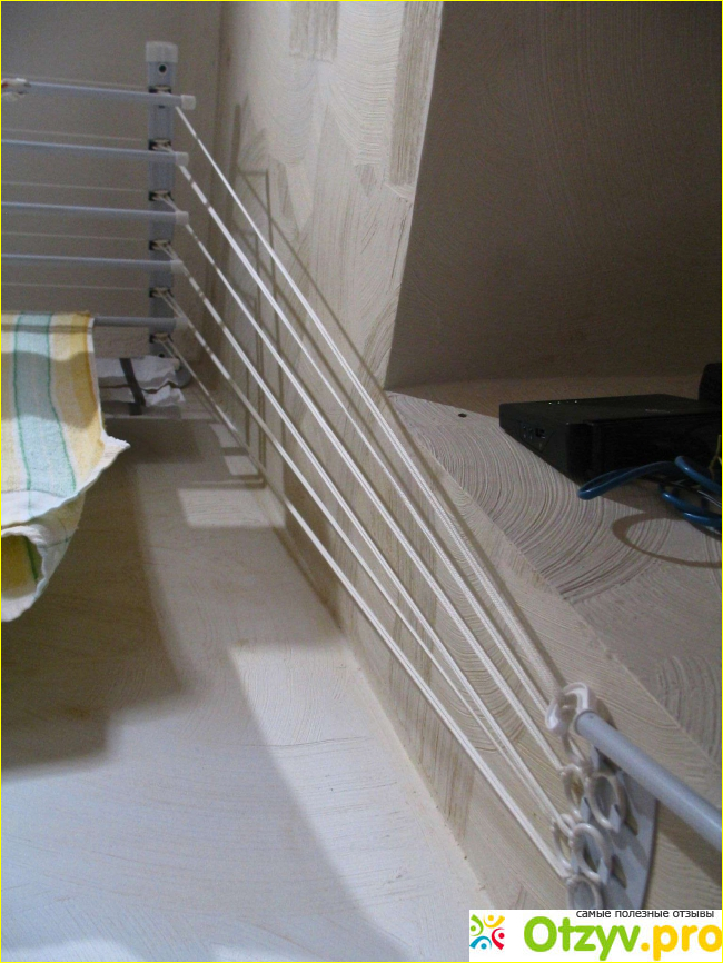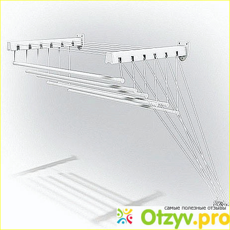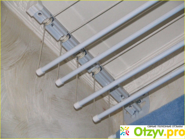 Для того, чтобы бельё не провисало, производитель предусмотрел стопорный механизм. Штанги очень прочные, они не прогибаются под тяжестью мокрого белья.