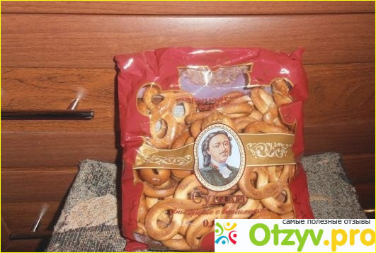 номинальный вес, которого состовляет пол килограмма, что достаточно не плохо. Сушек в пакете довольно много, имеет интересную форму в виде восьмерки, которые имеют золотистый цвет.