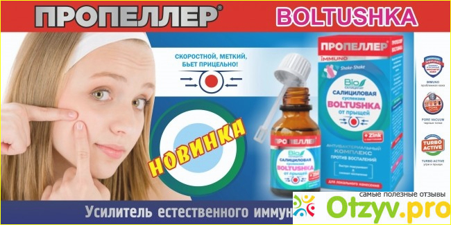 Но из этой ситуации она не делала проблем, так как пользовалась специальным кремом, от которого шелушение проходило. Но в последних пол года она вела активную борьбу с прыщами, которые были у неё по всему лицу, но в основном на лбу и в области подбородка. Для первой красавицы это был шок, она не знала как от них избавится, не могла без слёз смотреть на себя в зеркало, при этом постоянно плакала. Раньше она никогда не ходила с челкой, а в этом случае ей пришлось её сделать, чтобы было меньше заметно прыщи. Самое было неприятное, когда знакомые обращали внимание и спрашивали о высыпаниях, а это как удар для неё. Сколько она своих сил потратила, нервов, слёз и даже денег на разнообразные средства и крема против прыщей, но эффект был слабым и у неё всё больше и больше опускались руки. Но порой действительно приходится перепробовать разные варианты, чтобы найти подходящий и она нашла. По совету косметолога она приобрела Болтушку фирмы Пропеллер, которая стоит не так уж и дорого, особенно если сравнивать её с ценами разных средств, что она покупала до этого.
