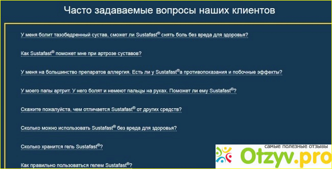 На сайте можно найти и положительные отзывы о препарате и часто задаваемые вопросы.