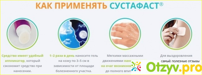 Гель сустафаст обладает противовоспалительным, обезболивающим и охлаждающим эффектом. Средство отлично подходит при артрите, артрозе и остеохондрозе.
