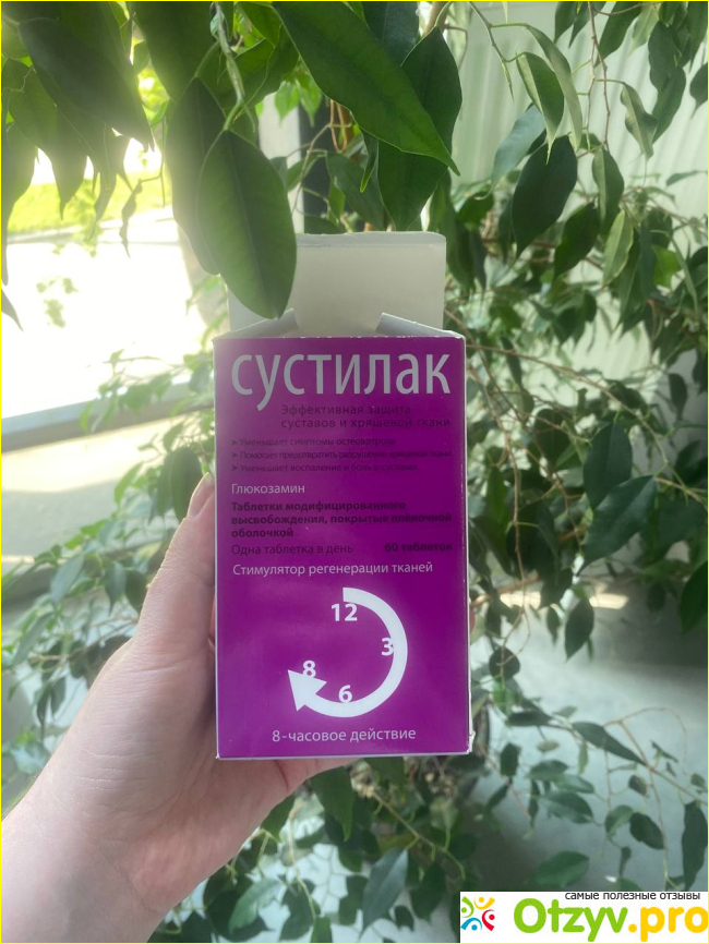 Подруга посоветовала попробовать сустилак. Прочитала в интернете инструкцию и состав. Увидела, что в составе основной компонент глюкозамин гиидрохлорид, который является корректором метаболизма хрящевой и костной ткани. Имеет противовоспалительное и обезболивающее действие для лечения суставов и позвоночника. Благодаря высокого содержания основного вещества глюкозамина он лучше усваивается в организме и быстрее высвобождается из организма. Решила приобрести и попробовать. Хочу сказать, что сустилак реально облегчил мое состояние, и я чувствую положительный эффект. Пью его уже 3 месяц, так этот препарат имеет накопительный эффект и принимать его следует курсами. Вообще рекомендуют курс 6 месяцев с интервалом, поэтому я думаю , что результат будет еще лучше