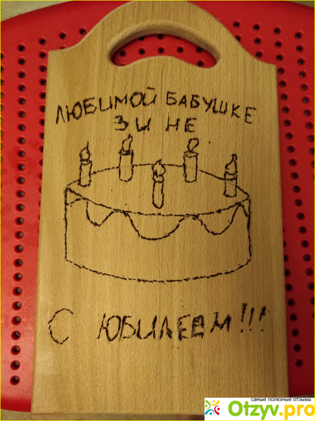 Моя любимица подарила роднульке красивую, замечательную, удивительную досочку с прекрасным изображением юбилея, которую она сама изготовила. Обыкновенная, кухонная, кулинарная дощечка.
