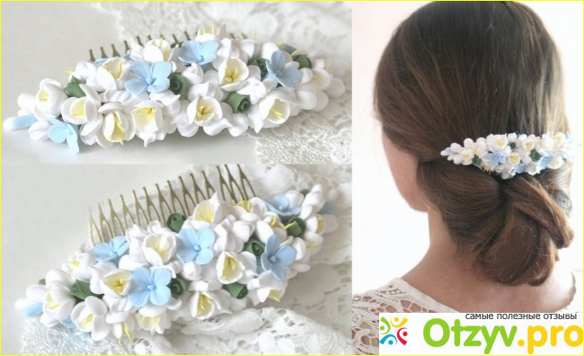 - с цветами - цветы могут быть изготовлены из абсолютно любых материалов. Такие гребешки выглядят всегда нежно и очень красиво. Их можно дополнять бусинами и камнями, чтобы придать еще и блеск.