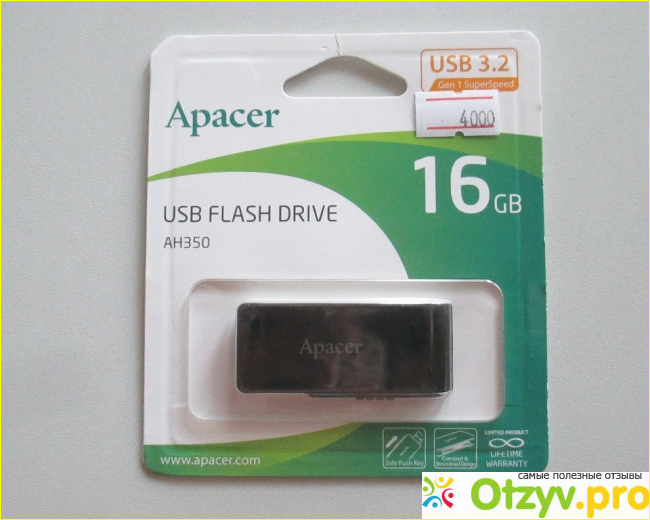 В этот раз я купила вот такую флешку. Эта сверхскоростной флэш-накопитель торговой марки Apacer производства Тайвань.