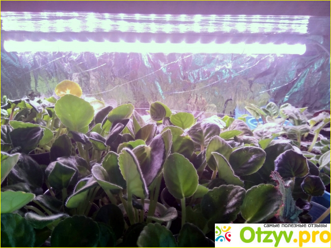 Комнатные цветы и растения получают в процессе своего развития «полезный» свет, поэтому буквально на глазах вся зелень преображается. Вся листва зеленая и сочная. Фиалки, которые пережили пересадку, быстро укоренились и пошли в рост. По всей видимости, если использовать лампы на постоянной основе, то в скором времени можно ожидать обильного цветения.