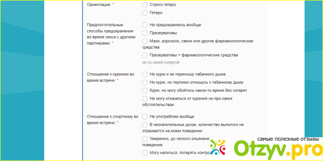 Дальше список вопросов уже о себе или паре: