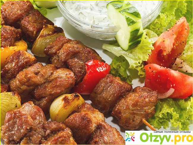 Подаю шашлычки на блюде выстланном листами капусты, обязательно с овощами.