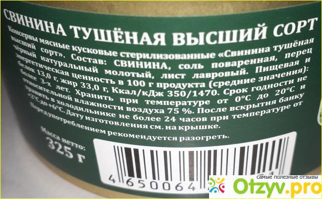 Очень вкусное мясо, почти без примеси жира, с минимальным количеством желе! Вкус замечательный, качество, пожалуй, даже лучше, чем у тушенки советских времен.