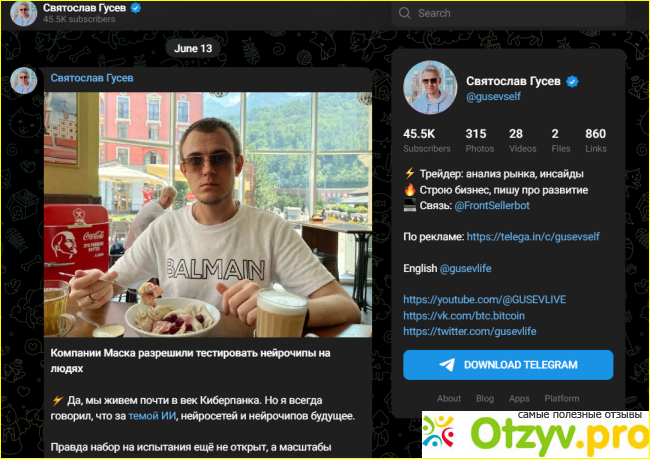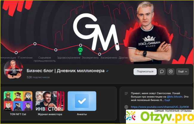 Святослав Гусев – это известный инвестор и успешный трейдер, которому удалось достичь высоких результатов в своей деятельности благодаря глубокому знанию рынка и профессиональному анализу финансовых инструментов. Святослав блогер Telegram, а также трейдер и инвестор в криптовалюты. В ленте своего канала он позиционирует себя как гуру в мире криптовалют.