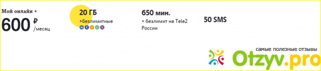 Огромный плюс - это безлимитый трафик, который подходит для социальных сетей + пакет Интернета - 6 гигабайт, а также - Viber и WhatsApp.