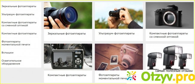 Неплохо представлено всё для фото и видеокамер, а также сами видеокамеры и фотоаппараты. А то что здесь можно найти любой аксессуар к ним, уже можно и не упоминать. Фотоаппараты здесь представлены как зеркальные, так и компактные, и беззеркальные, а помимо простых видеокамер здесь продаются и экшн-камеры.