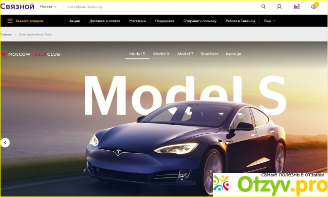 А если и этого вам окажется мало, то можете приобрести продвинутый электромобиль марки "Tesla"! Хотя цена на такую игрушку зашкаливает за 10 млн. руб!!! Но это говорит о многом, хотя бы о том, что "Связной" не боится никаких товаров и готов идти в ногу со временем).