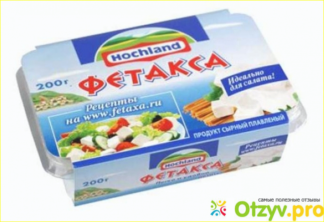 Чаще всего покупаюд фетаксу бренда Хохланд. Продается сыр в пластиковом контейнере, срдержащимся в картонной красочной упаковке. Но, отмечу что это не сыр, как таковой, а всего лишь сырный продукт, содержащий, к тому же, растительные жиры. То есть, жиров в нем половина на половину - 50 проентов молочного и 50 процентов растительного. Есть в фетаксе от Хохланд и ешки, это не очень радует, хочется все же натуральными продуктами свой организм баловать.