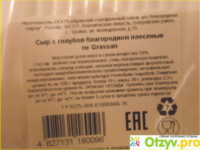Надеюсь мой столь подробный отзыв будет вам интересен. Фото прилагаются. Покупайте отечественный сыр с плесенью, по цене и качеству Grassan blue один из лучших который можно купить в ряде сетевых гипермаркетов.