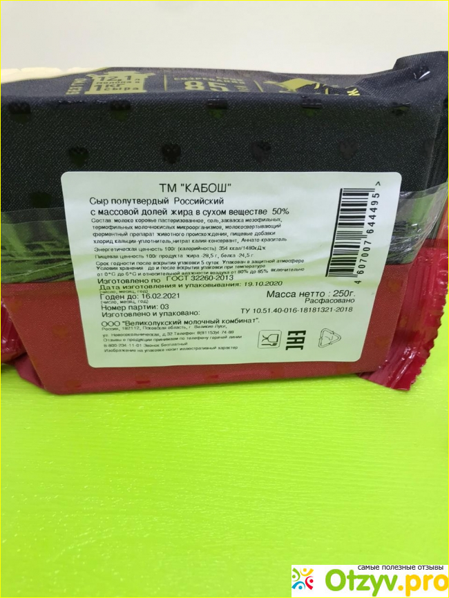 Производитель Кабош, сделано в России. Сыр вкусный, молочный такой, очень похож на домашние сыры моей бабушки. Она сама творог делает, а порой и сыр приготовит. Выходит прям очень рядом с таким угличским. Видимо потому что производитель использует натуральное молоко, без лишних добавок. Кстати, состав у сыра хороший???? пп-шинели точно оценят)))