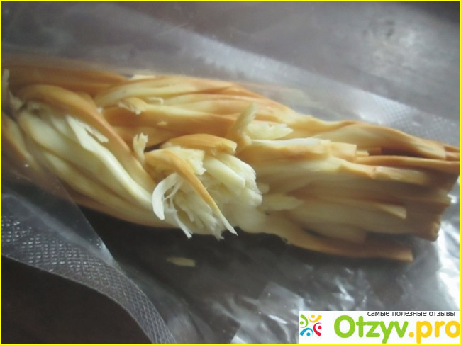 Вскрываем и начинаем косичку делить на кусочки и есть. Теоретически это закуска к пиву, которую подают в пивных барах